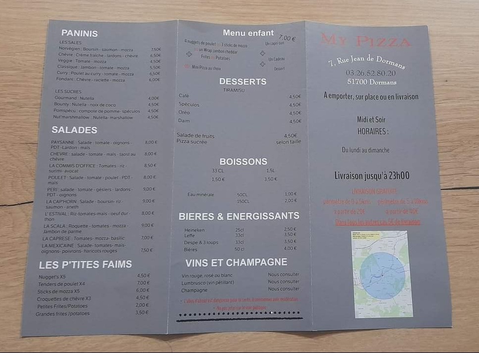 Welcome to MY PIZZA, a hidden gem located at 7 Rue Jean de Dormans, 51700 Dormans, France. This delightful pizzeria has carved a niche for itself, known for its homemade feel and generous portions. Customers rave about the quality of ingredients, noting that every pizza is well-garnished and bursting with flavor.